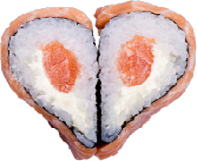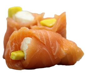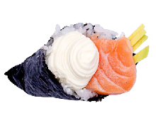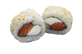 Arroz, alga, sésamo, salmón y queso cremoso.