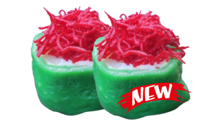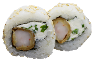 Arroz, alga, sésamo, camarón frito, verdeo y queso cremoso.