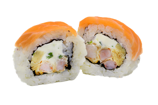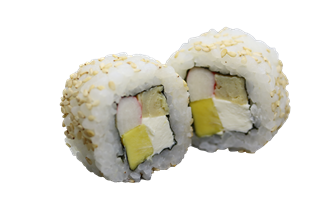 Arroz, alga, sésamo, aguacate, kanikama, huevo y queso cremoso.