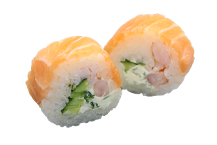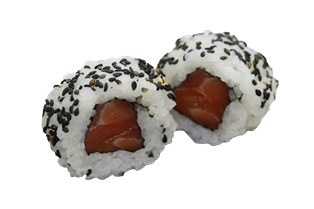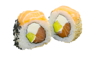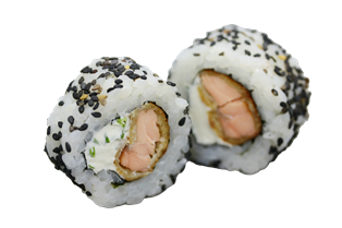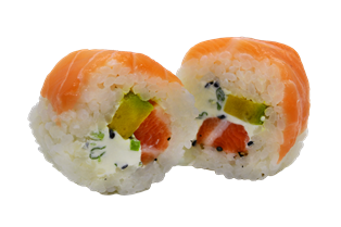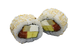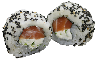 Arroz, alga, sésamo, aguacate, salmón y queso cremoso.
