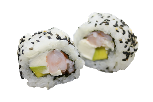 Arroz, alga, sésamo, camarón hervido, aguacate y queso cremoso.
